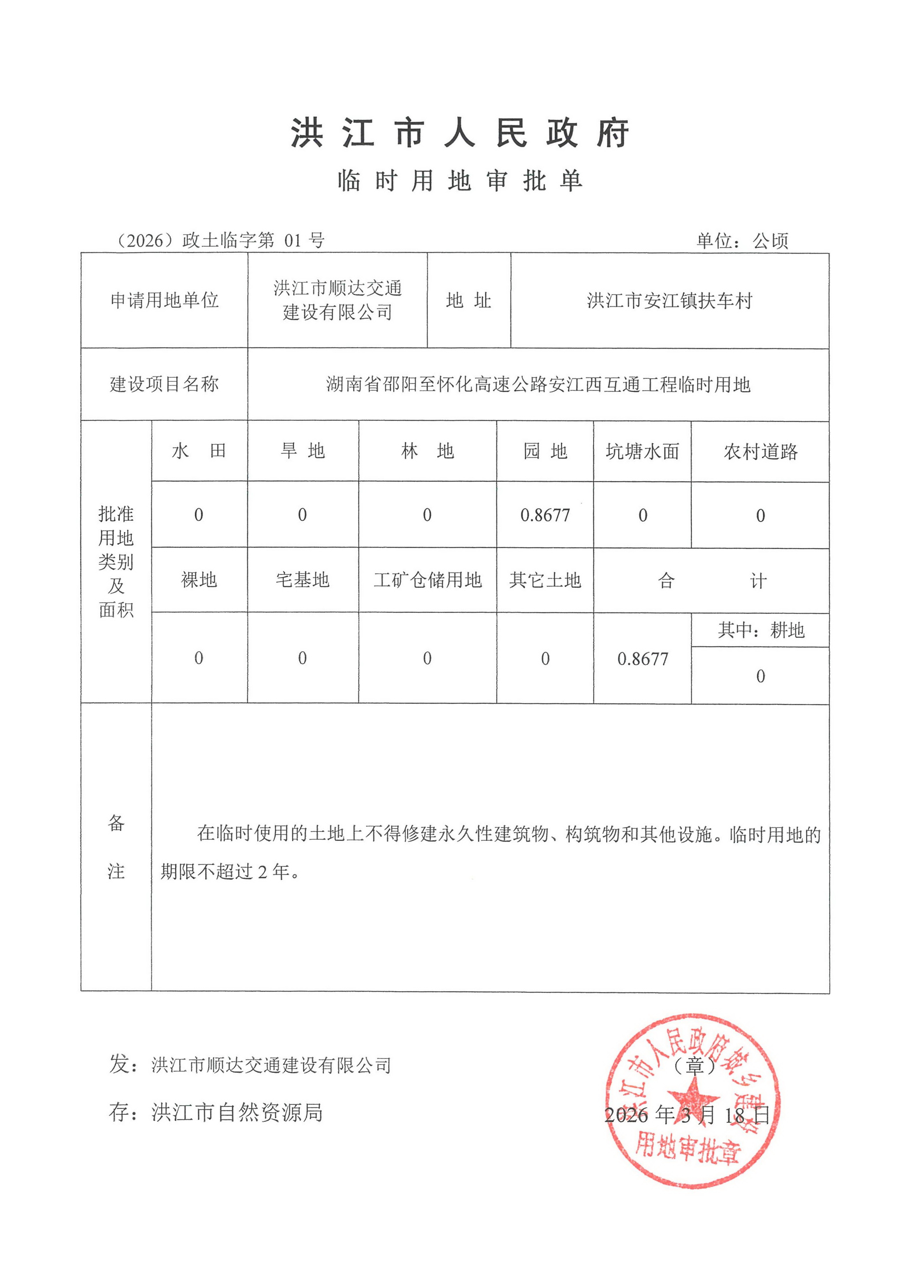 临时用地审批单(2026)政土临字第01号