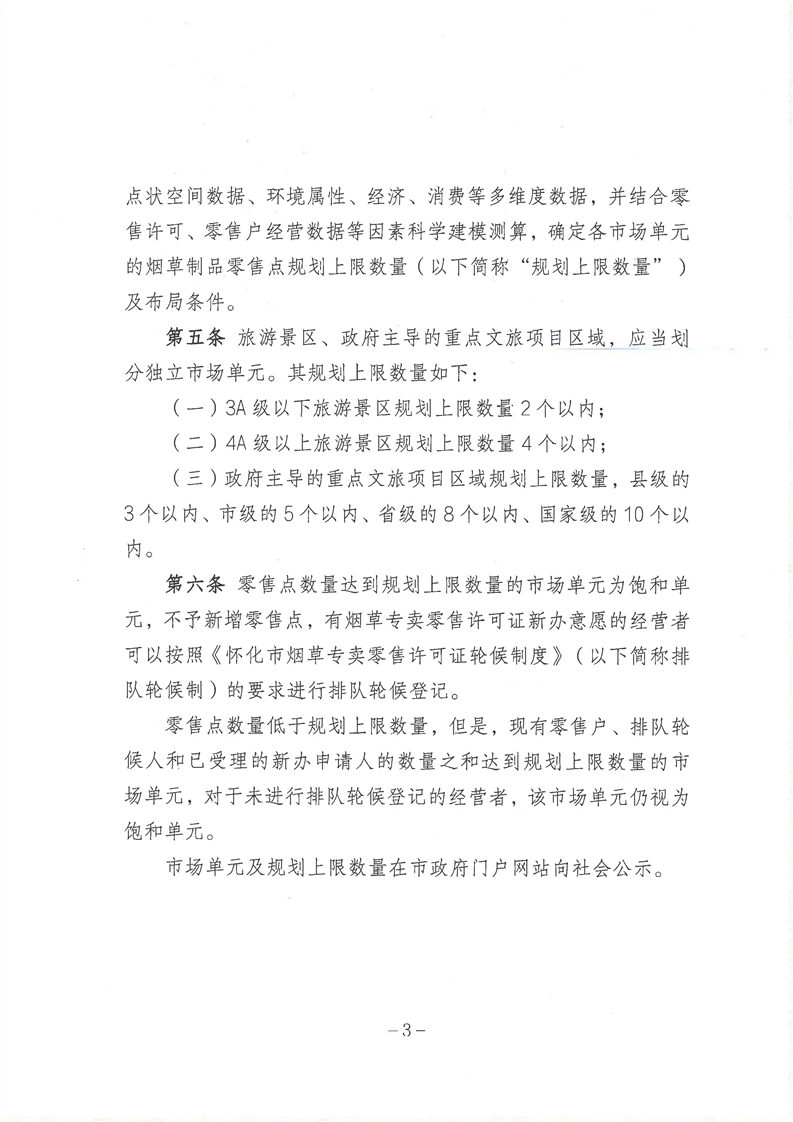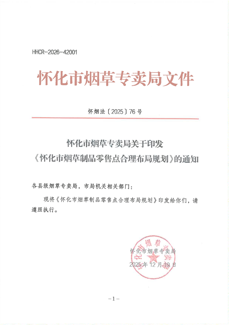 怀化市烟草专卖局关于印发《怀化市烟草制品零售点合理布局规划》的通知