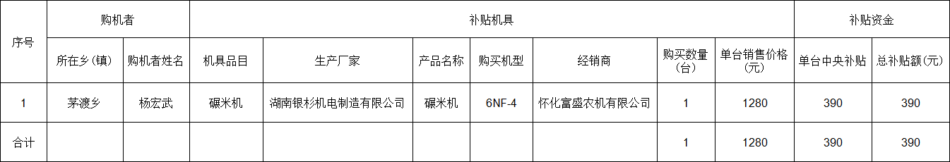 茅渡乡2025年第五批享受农机购置与应用补贴的购机者信息公示表