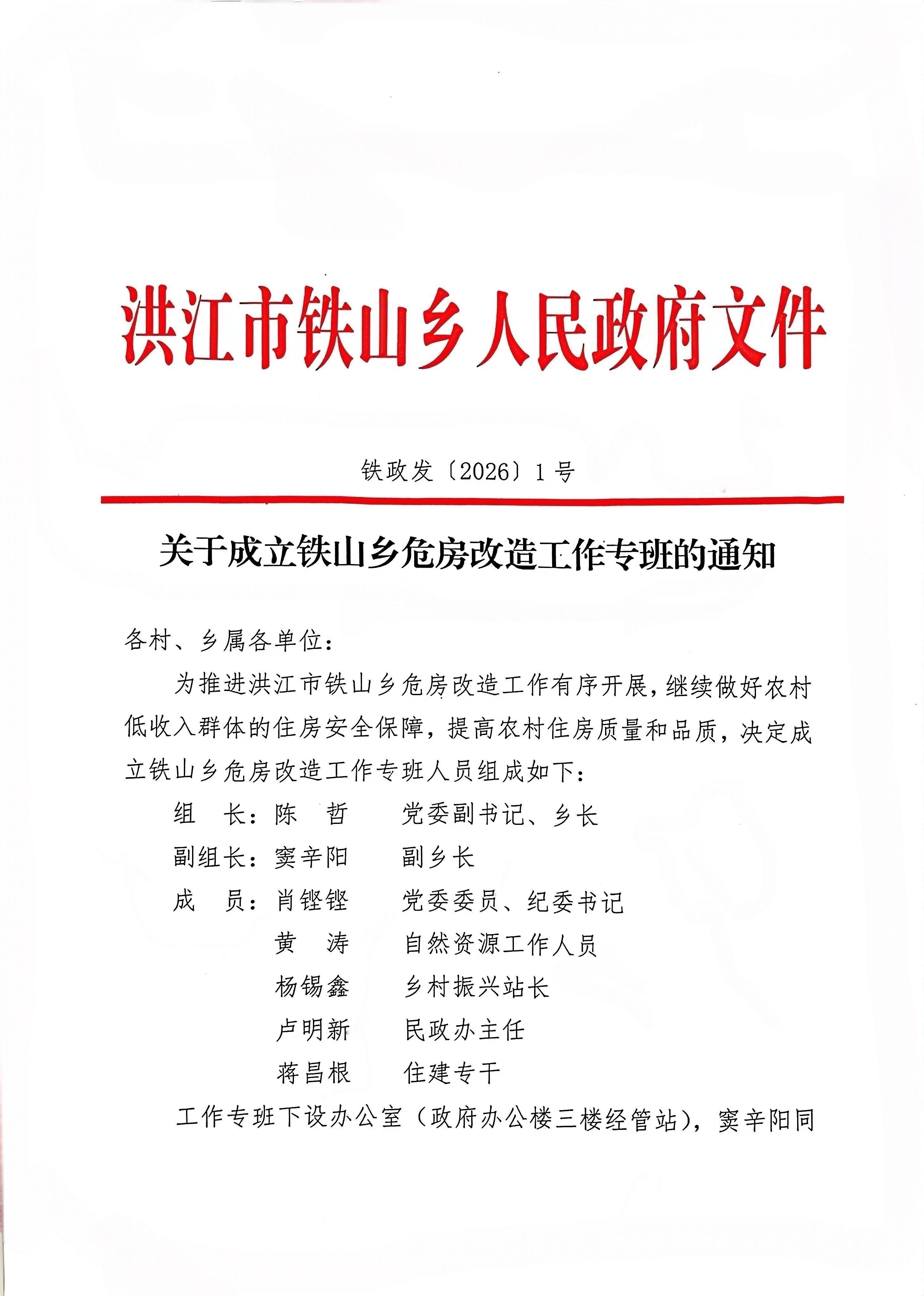 关于成立铁山乡危房改造工作专班的通知